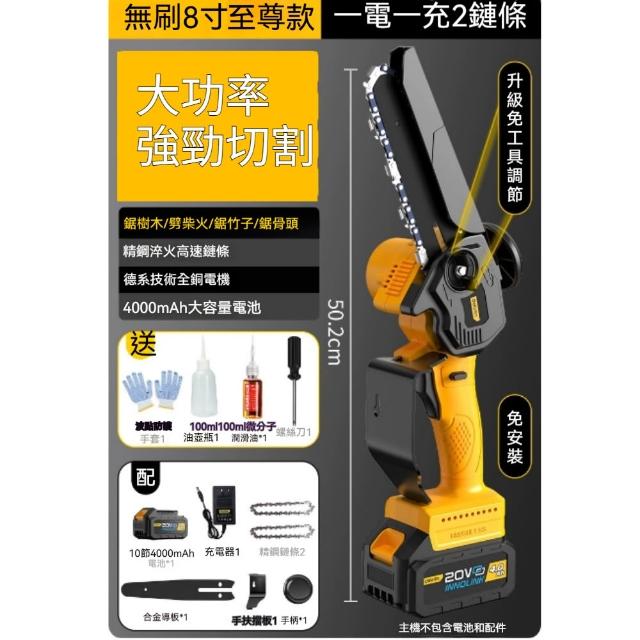 巧可巧可 6寸無刷單電池 家用小型手持電鋸 充電式锂電大容量電動手鋸 伐木砍樹鋸樹器 修枝機 割草機 2根精鋼鏈條
