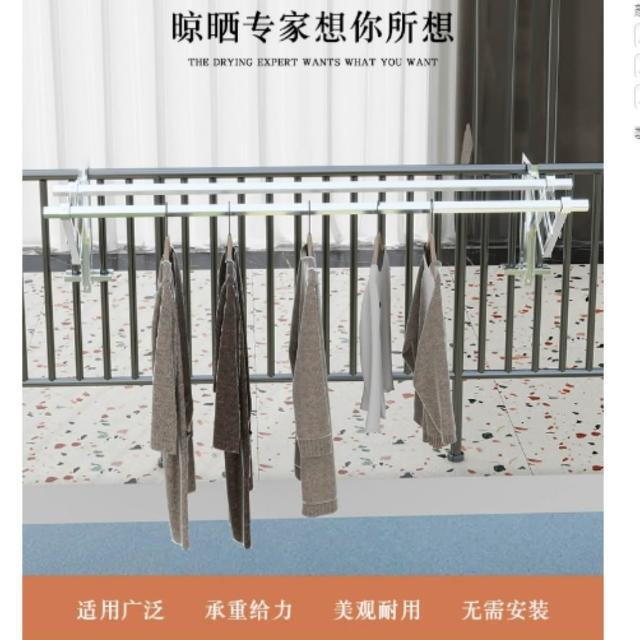 巧可巧可 免打孔折叠伸縮衣架 收納晾衣架 陽台欄杆雙杠鐵藝晾曬棉被 簡易晾衣免安裝 曬衣架