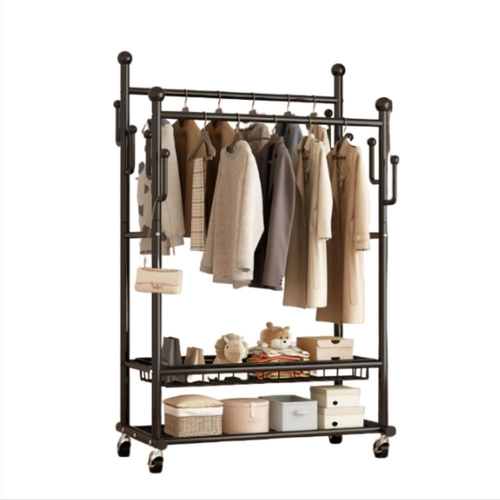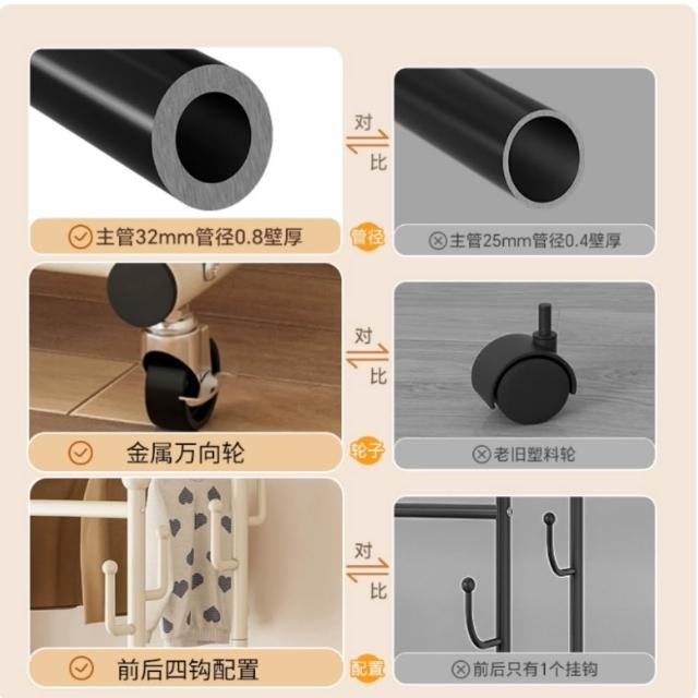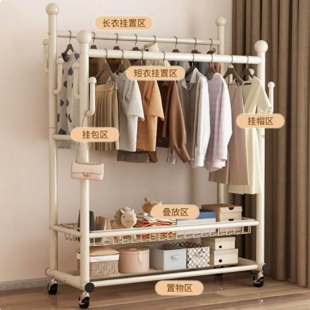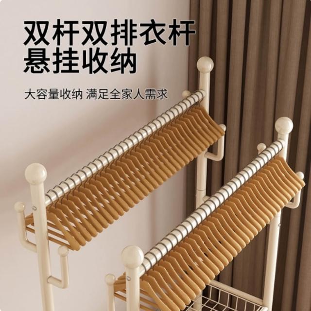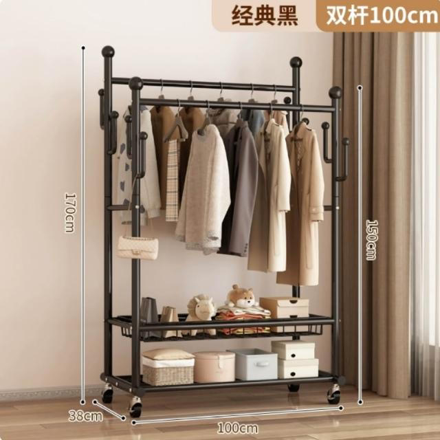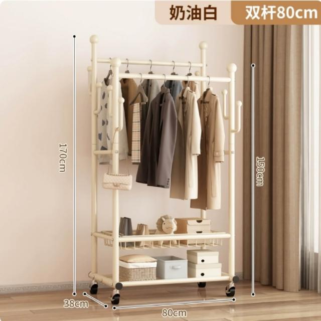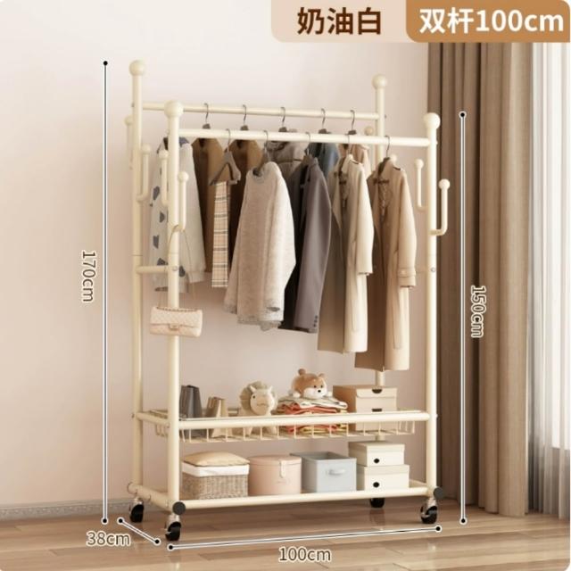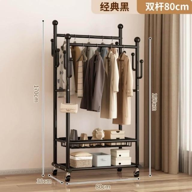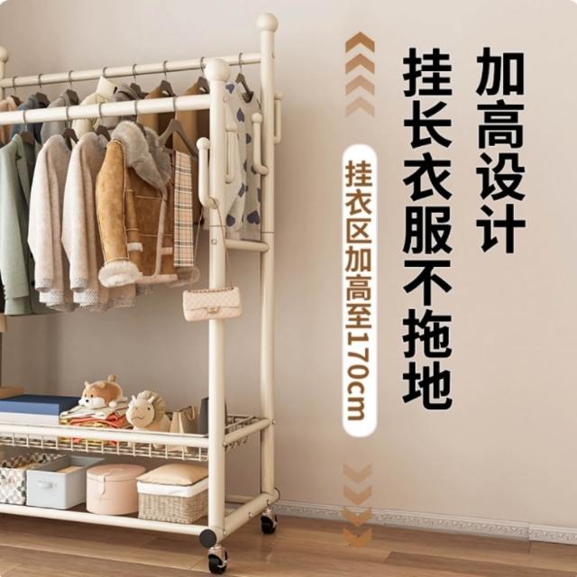 巧可巧可 落地家用挂衣架 立式臥室室內衣帽架 可移動多功能雙杆大容量晾衣架 挂衣服曬衣架 帶萬向輪