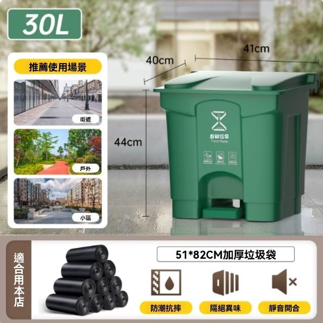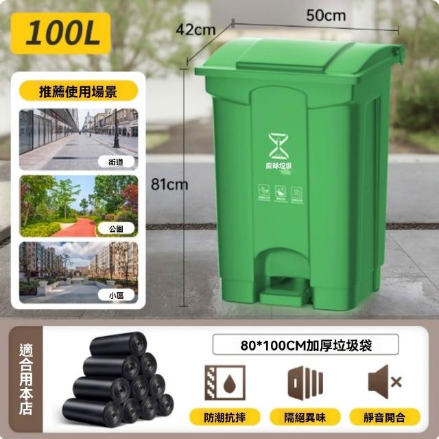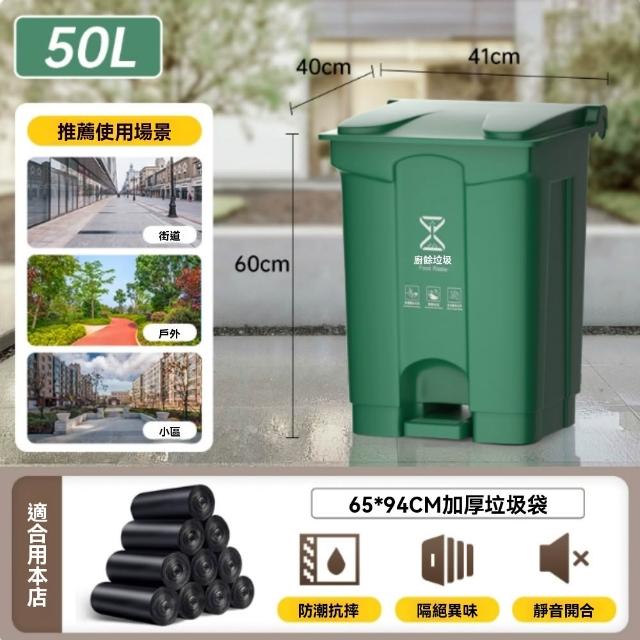 30-100L綠色特厚垃圾桶 商用大容量垃圾桶 室外腳踩帶蓋垃圾桶 家用廚房餐飲專用腳踏式大號衛生桶