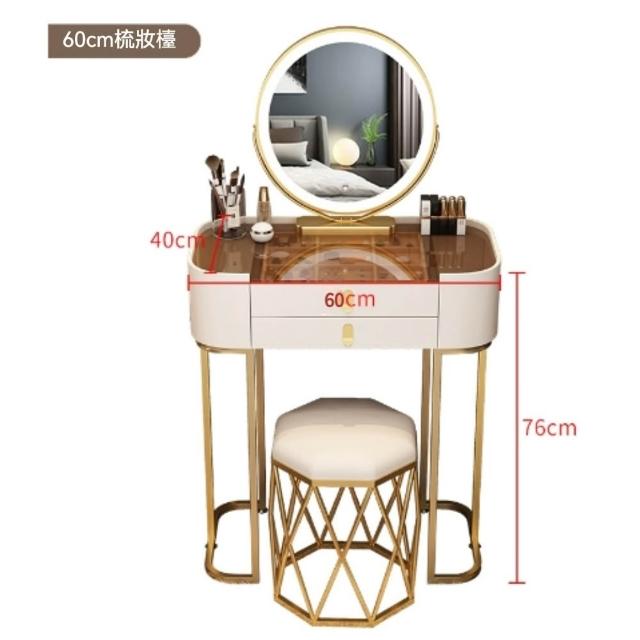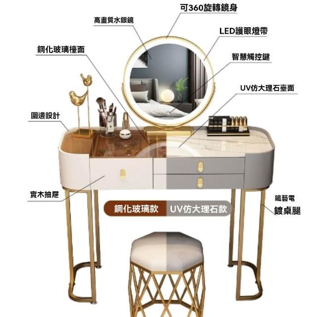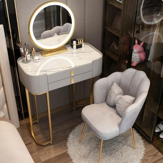 巧可巧可 輕奢玻璃梳妝台 岩板桌面灰色60cm 臥室現代簡約岩板小型化妝桌 物品收納櫃 化妝品置物架