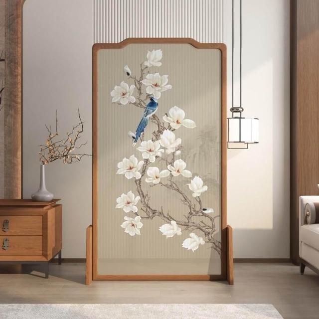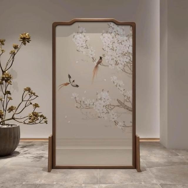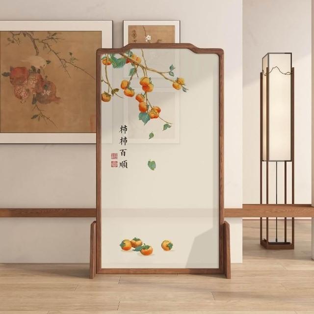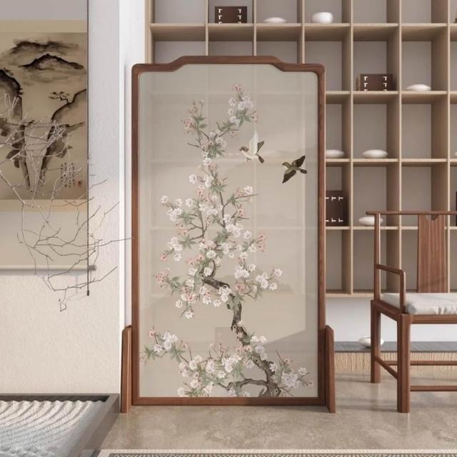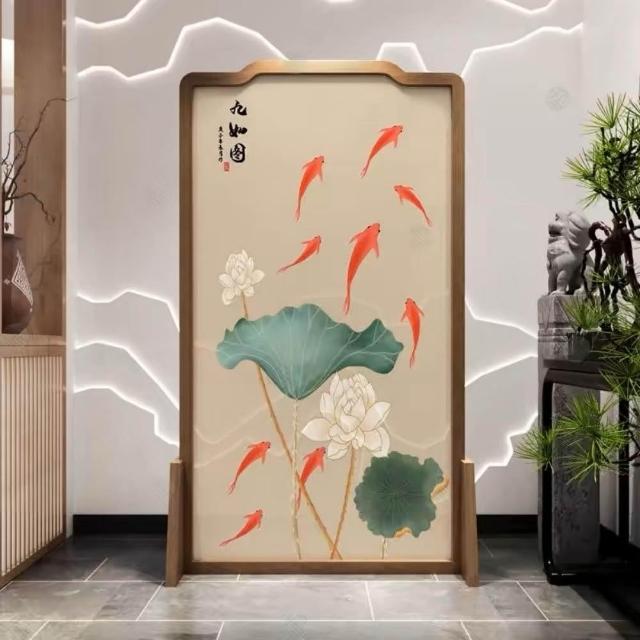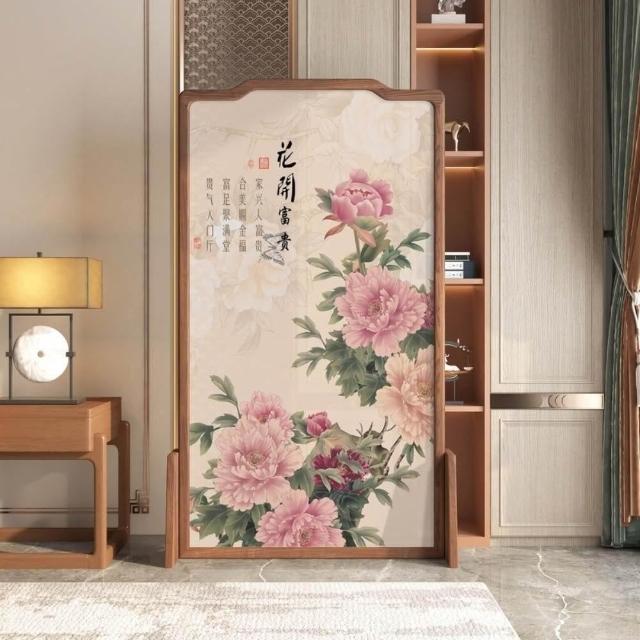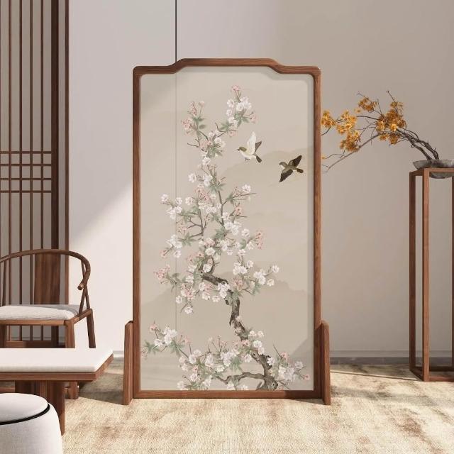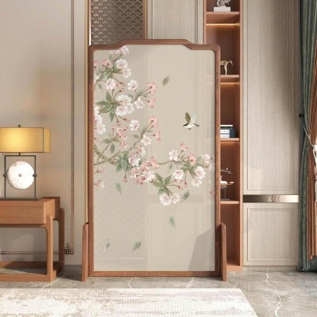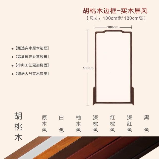 巧可巧可 實木屏風 中式屏風 客廳入戶隔斷 玄關隔斷 臥室遮擋 布藝實木移動座屏 雙面圖案 隔斷牆 胡桃木 100*180cm