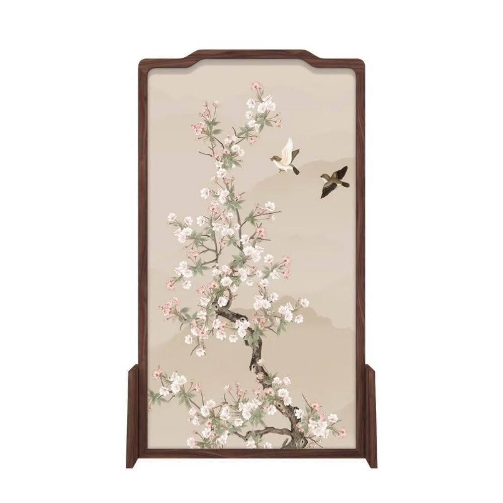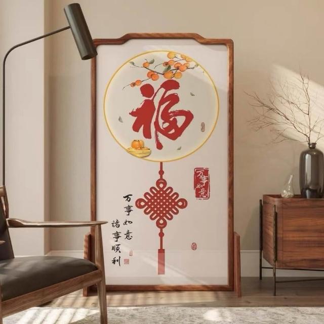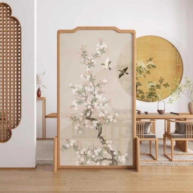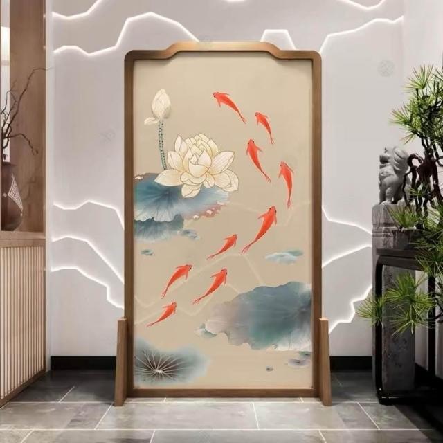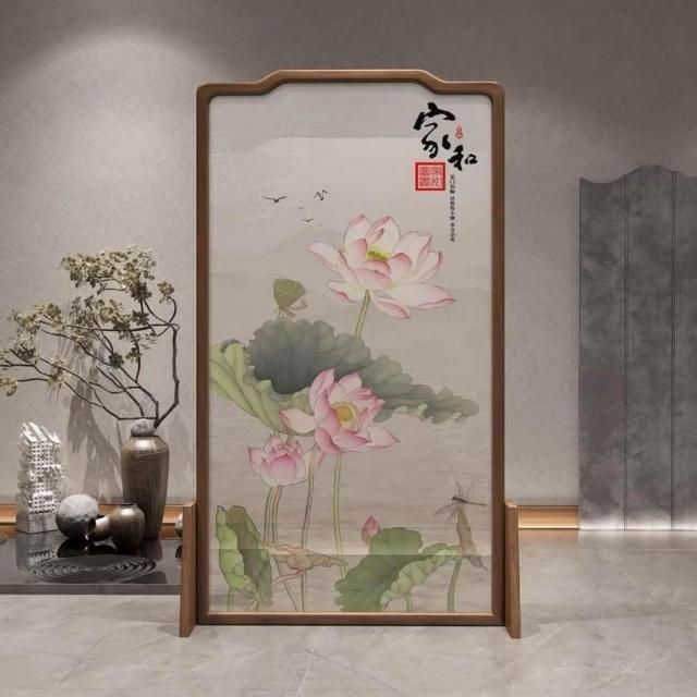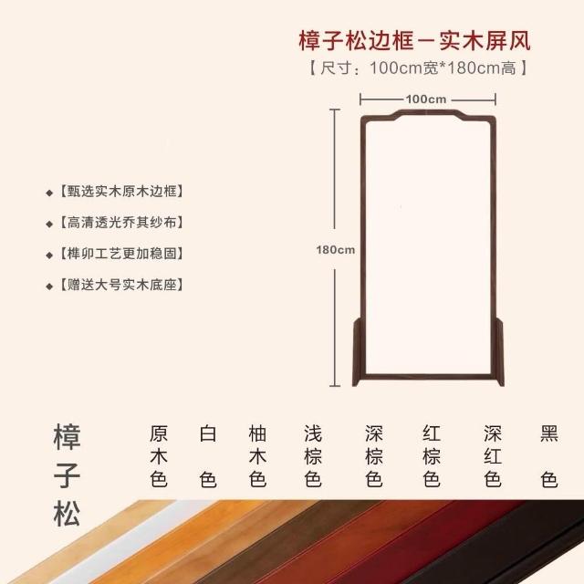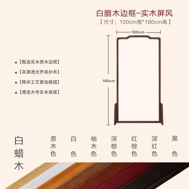 巧可巧可 實木屏風 中式屏風 客廳入戶隔斷 玄關隔斷 臥室遮擋 布藝實木移動座屏 雙面圖案 隔斷牆 胡桃木 100*180cm