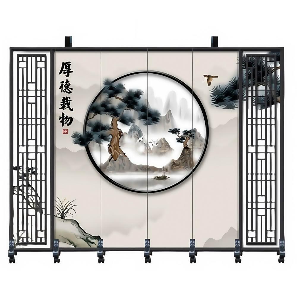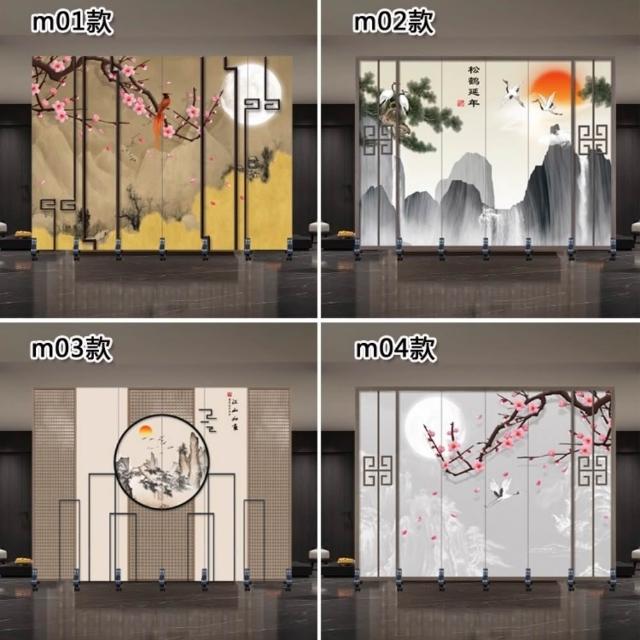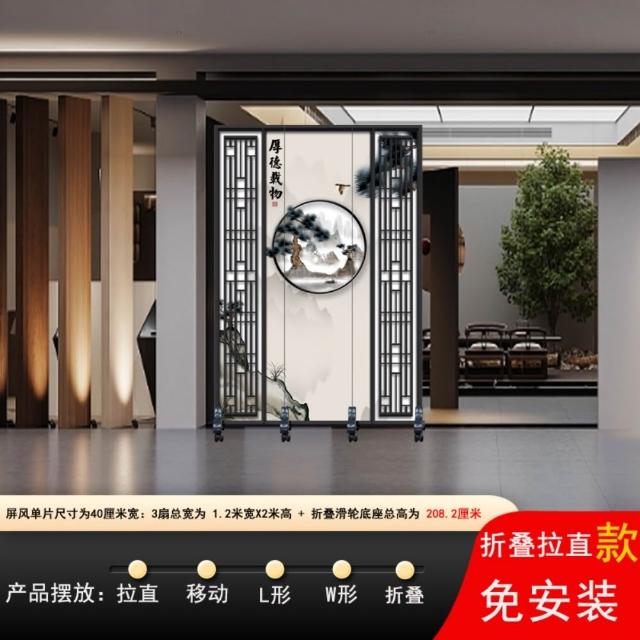 巧可巧可 推拉移動屏風 隔斷客廳 新中式可折疊屏風牆 屏風簾 主播背景墻 玄關折疊隔板 隔斷屏 座屏 玄關遮擋