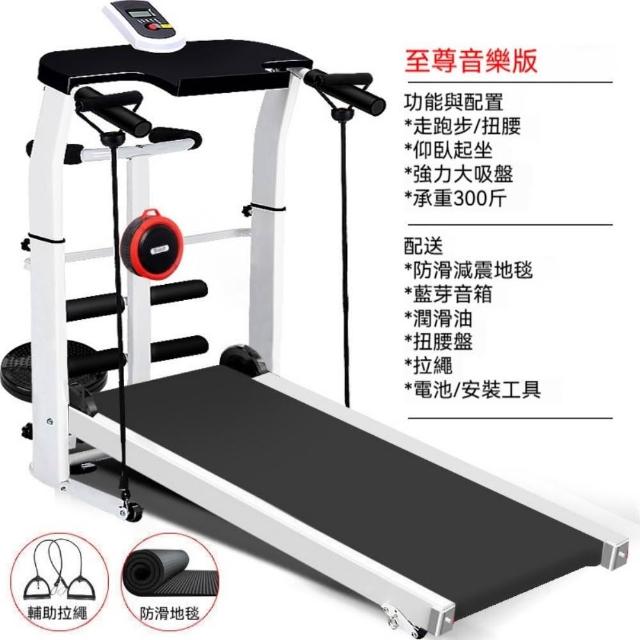 可折疊爬坡機 多功能健身機 跑步機 靜音減震機械走步機 跑步/仰臥/扭腰 手動坡度調節 強力吸盤【黑色+送輔助拉繩】