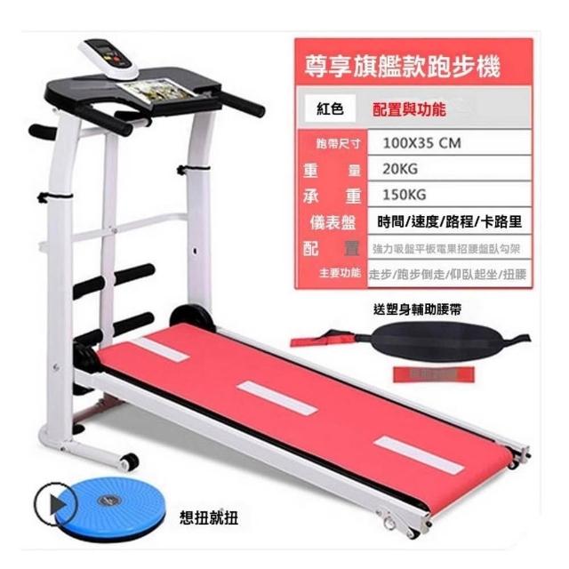 可折疊爬坡機 多功能健身機 跑步機 靜音減震機械走步機 跑步/仰臥/扭腰 手動坡度調節 強力吸盤【黑色+送輔助拉繩】