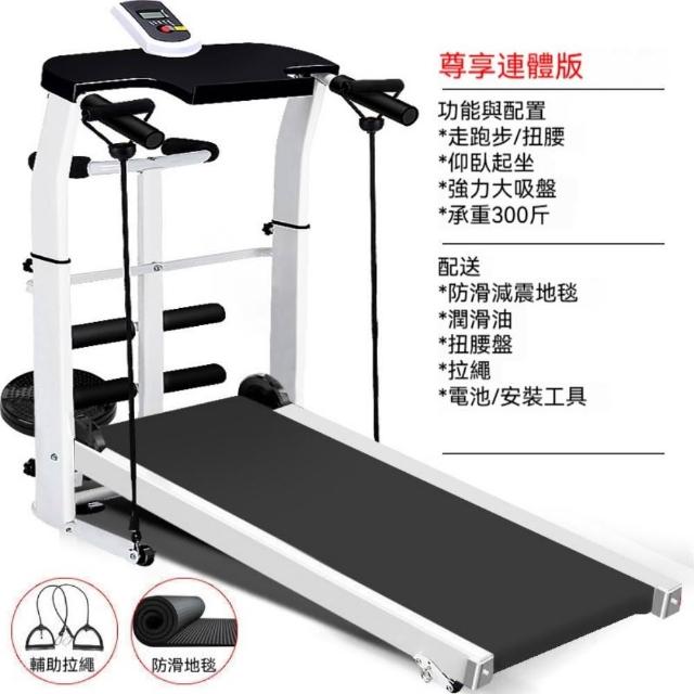 可折疊爬坡機 多功能健身機 跑步機 靜音減震機械走步機 跑步/仰臥/扭腰 手動坡度調節 強力吸盤【黑色+送輔助拉繩】