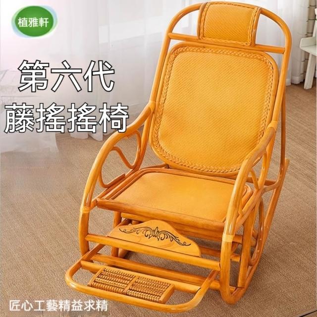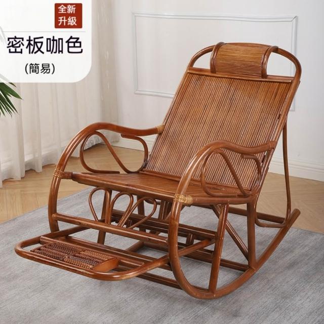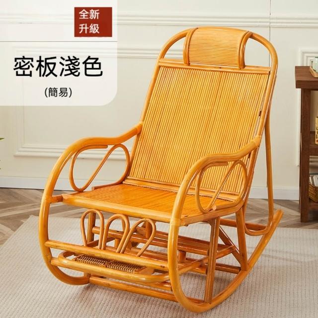 巧可巧可 密闆搖搖椅 陽台休閒搖椅 家用懶人躺椅 庭院單人椅 粗藤扶手藤條靠背 U型頭枕 光滑藤編坐面【咖色/淺色】