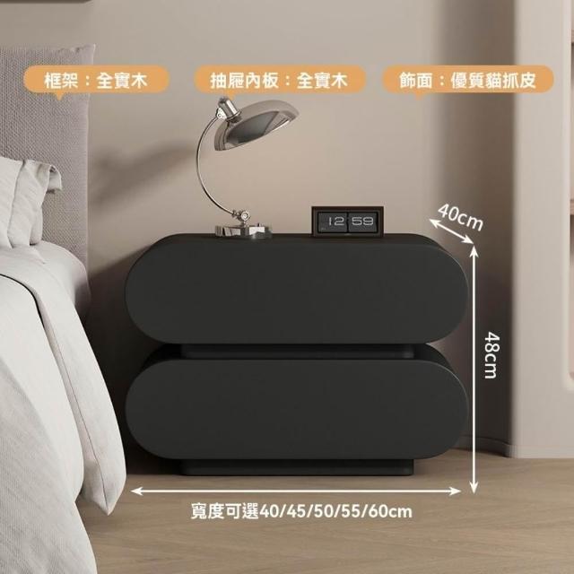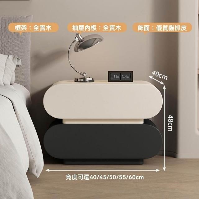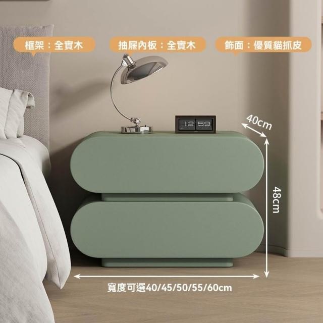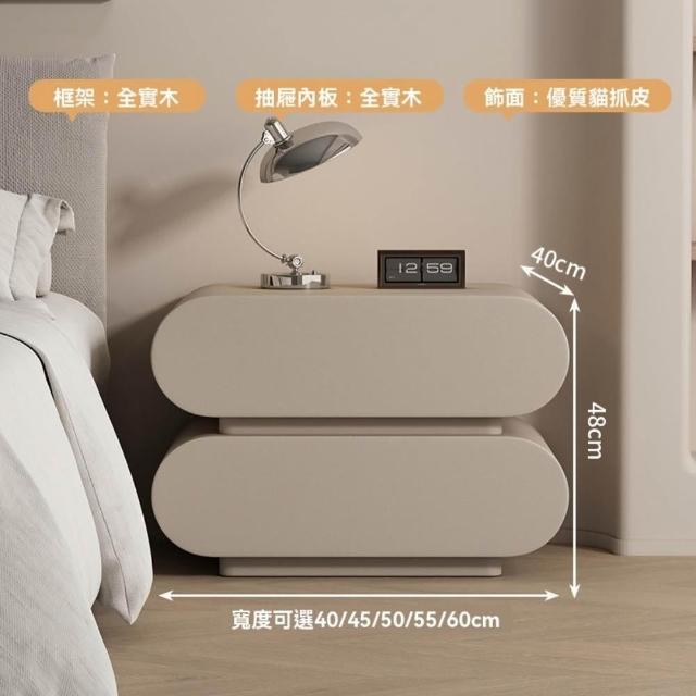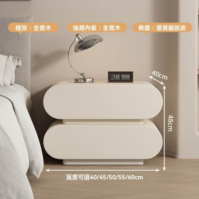木床頭櫃 多功能床邊櫃 臥室落地櫃 極簡奶油粉收納櫃 實木+貓抓皮飾面【七色可選+整裝