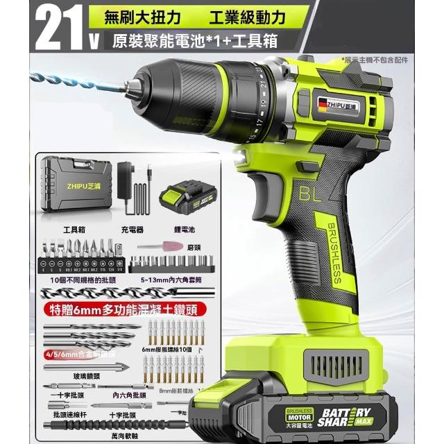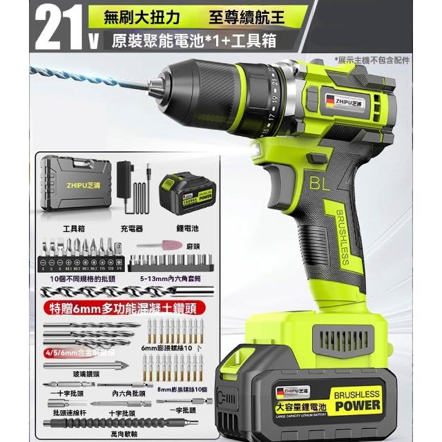 巧可巧可 芝浦21V無刷衝擊電鑽 多功能鋰電鑽 工業級手電鑽 無級調速 無刷小鋼炮 電動起子 輕量化機身 續航強勁 贈工具箱