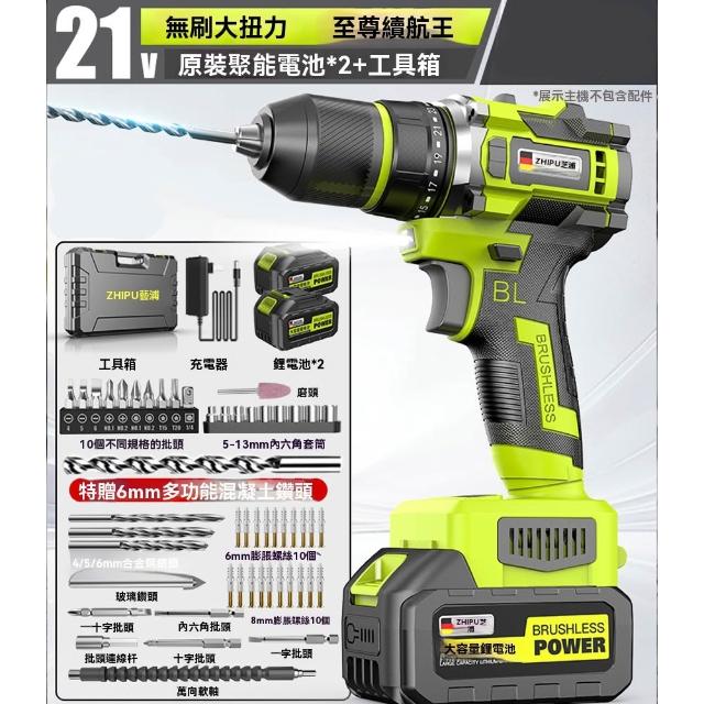 巧可巧可 芝浦21V無刷衝擊電鑽 多功能鋰電鑽 工業級手電鑽 無級調速 無刷小鋼炮 電動起子 輕量化機身 續航強勁 贈工具箱