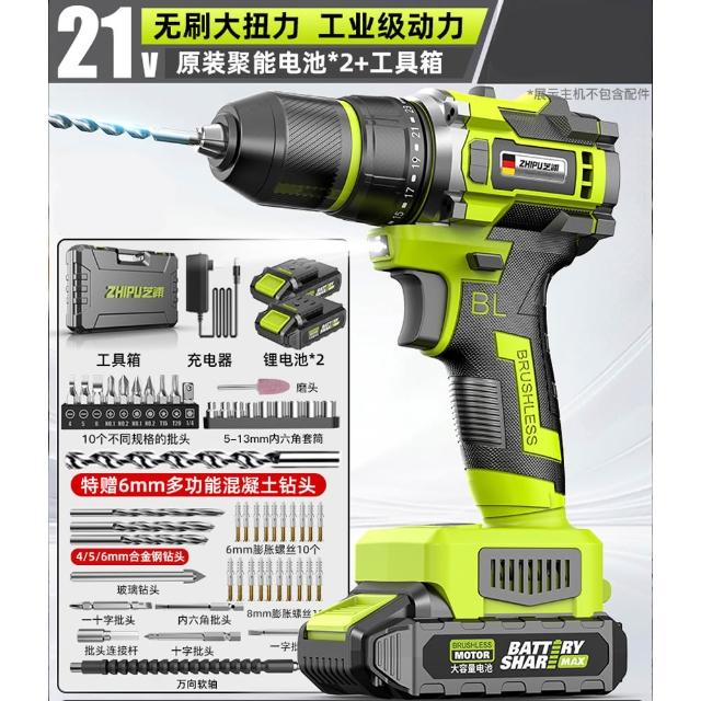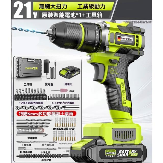 巧可巧可 芝浦21V無刷衝擊電鑽 多功能鋰電鑽 工業級手電鑽 無級調速 無刷小鋼炮 電動起子 輕量化機身 續航強勁 贈工具箱