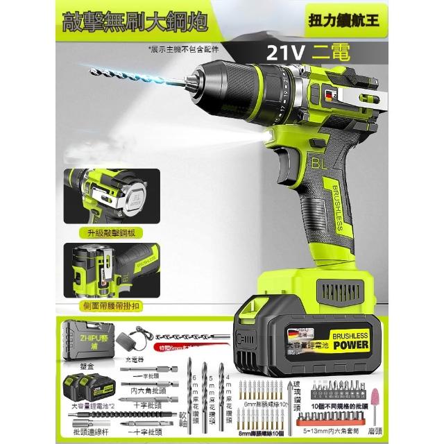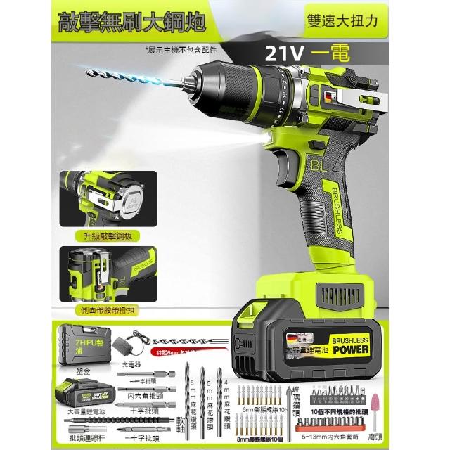 巧可巧可 芝浦21V敲擊無刷大鋼炮 雙速高扭力電鑽 家用手槍鑽 專業電動工具 鋰電鑽 鋼板鑽孔機 工具箱禮包