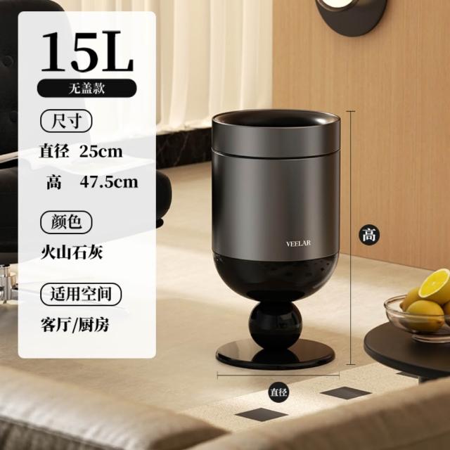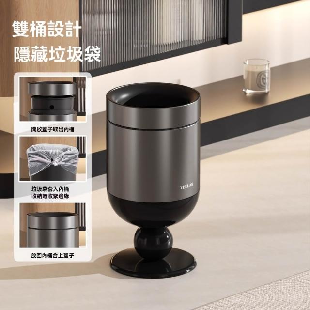 巧可巧可 15L酒杯造型復古垃圾桶 敞口直投垃圾桶 410不鏽鋼垃圾桶 圓形收納桶 無蓋敞口直投 內外雙桶