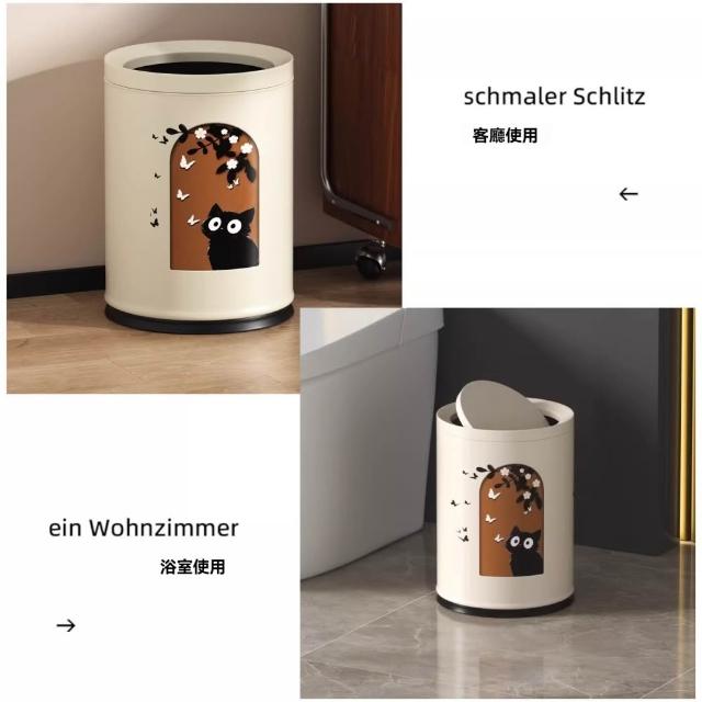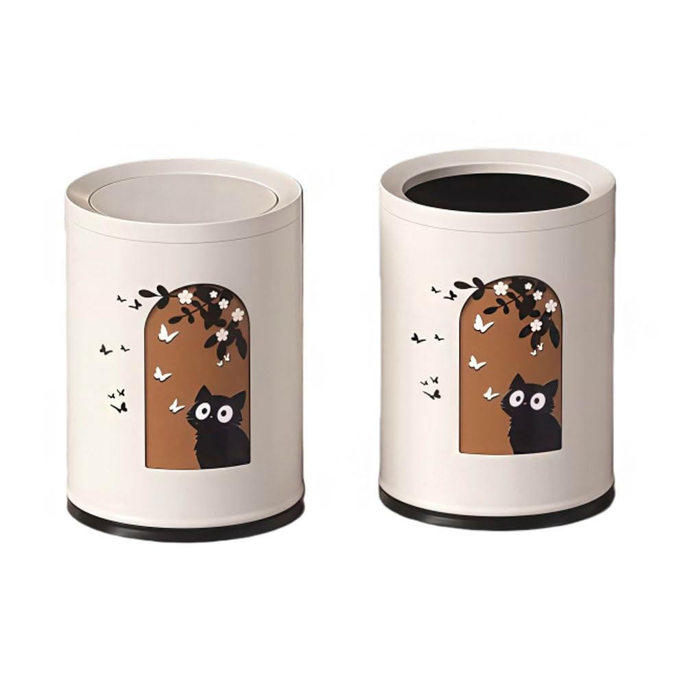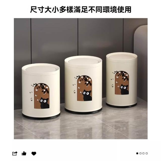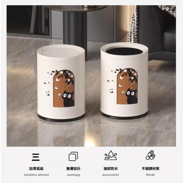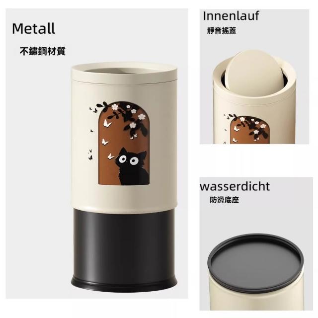 巧可巧可 10L/12L油風垃圾桶 不鏽鋼垃圾桶 圓形帶蓋垃圾桶 收納桶 圓潤桶口 不鏽鋼金屬桶身 【小貓款】