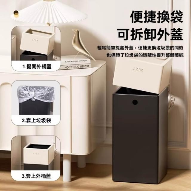 巧可巧可 13L/18L/20L方形金屬垃圾桶 無蓋直投垃圾桶 長方形垃圾桶 可拆分雙桶收納桶 雙層金屬紙簍