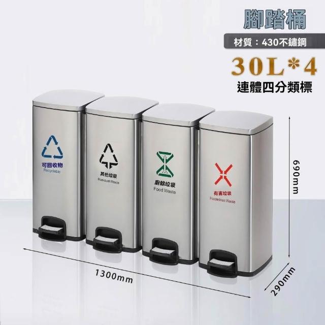 巧可巧可 30L腳踏式分類垃圾桶 連體分類回收桶 靜音緩降分類紙簍 分類收納桶 不鏽鋼回收桶