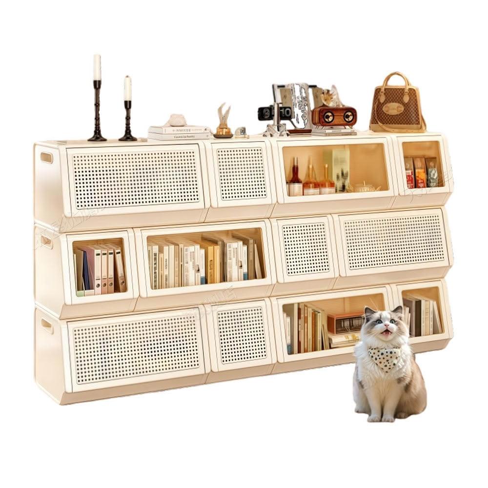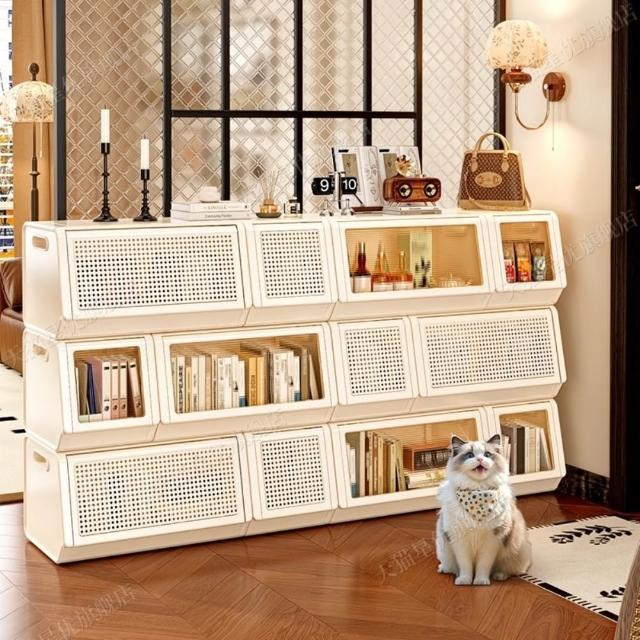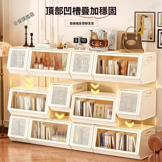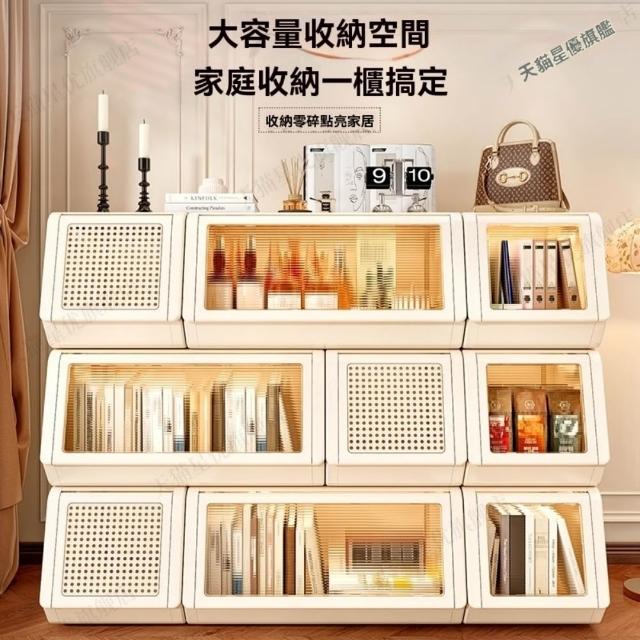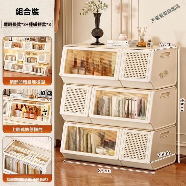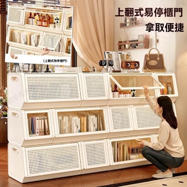 巧可巧可 3雙裝/6雙裝 上翻式懸停收納櫃 組合式翻蓋儲物櫃 透明藤條門板收納組 置物櫃架 可疊加收納櫃