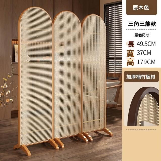 巧可巧可 折疊屏風隔斷 日式藤編屏風 座屏 實木框架 置物架 書架 展示架 餐廳茶室遮擋 2扇 帶腳款