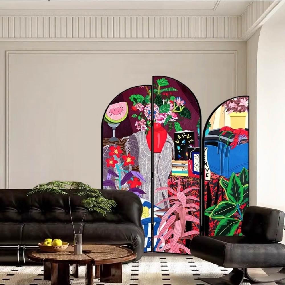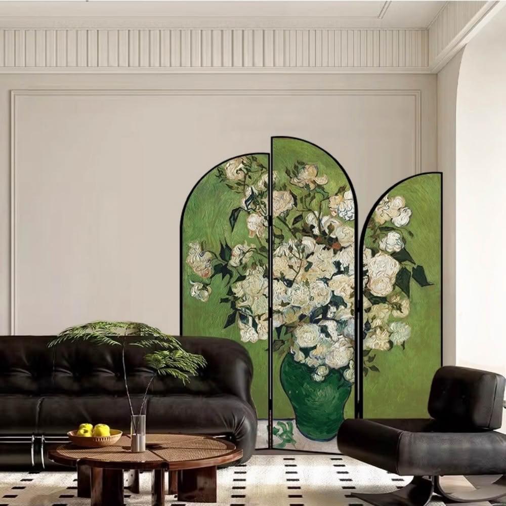 巧可巧可 法式油畫復古屏風 入戶隔斷 家用可折疊移動座屏 玄關遮擋 民宿裝飾背景牆 3扇 150*180cm