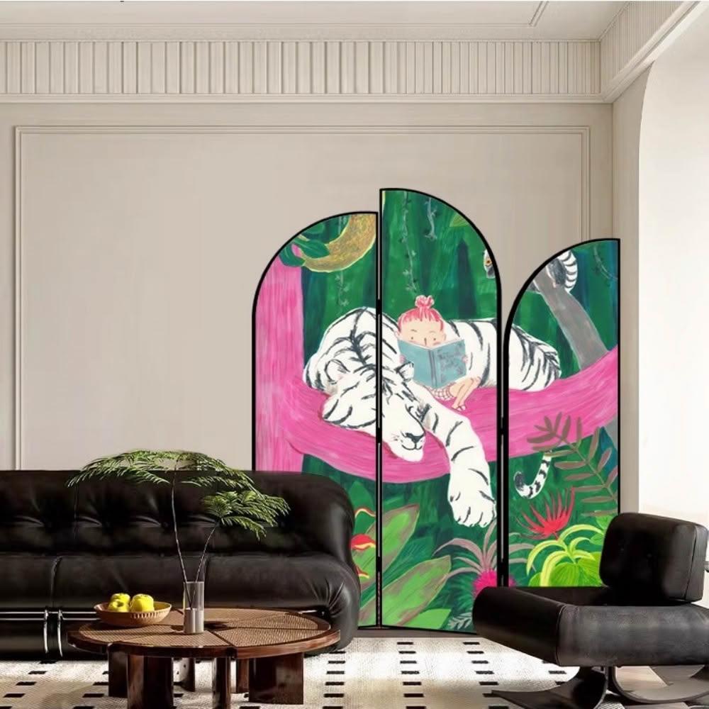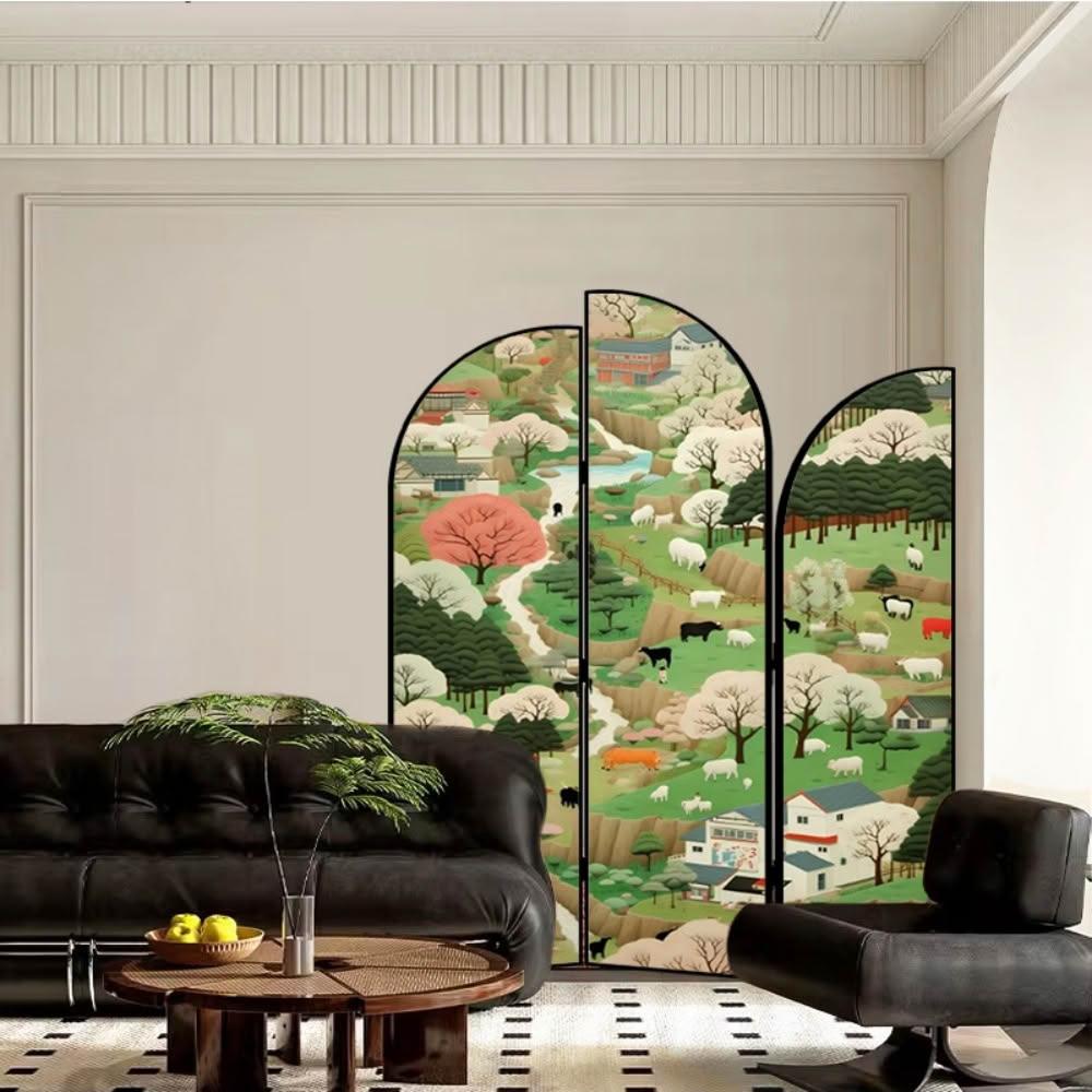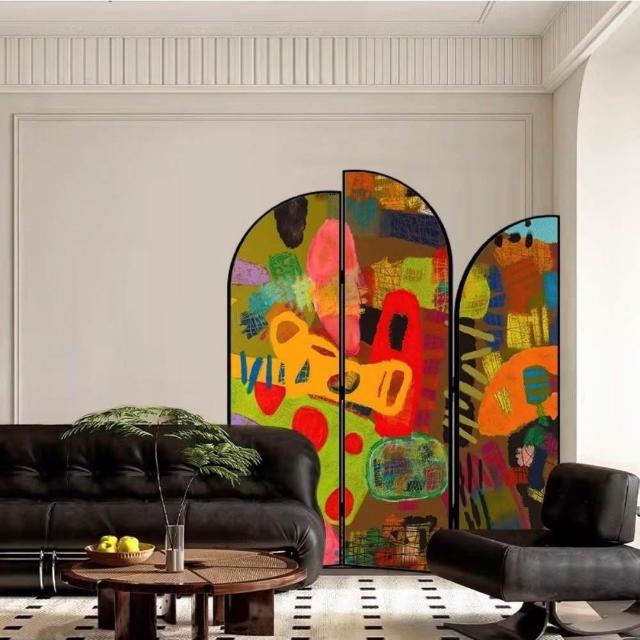 巧可巧可 法式油畫復古屏風 入戶隔斷 家用可折疊移動座屏 玄關遮擋 民宿裝飾背景牆 3扇 150*180cm