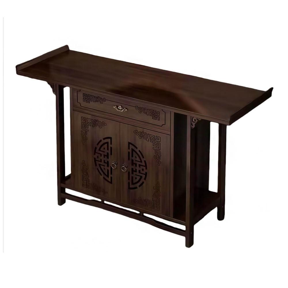 巧可巧可 古典中式實木佛龕收納櫃 玄關桌/神桌 禪風古典供奉櫃 加高帶門帶抽供桌 佛龕立櫃【80/100/120/140cm】