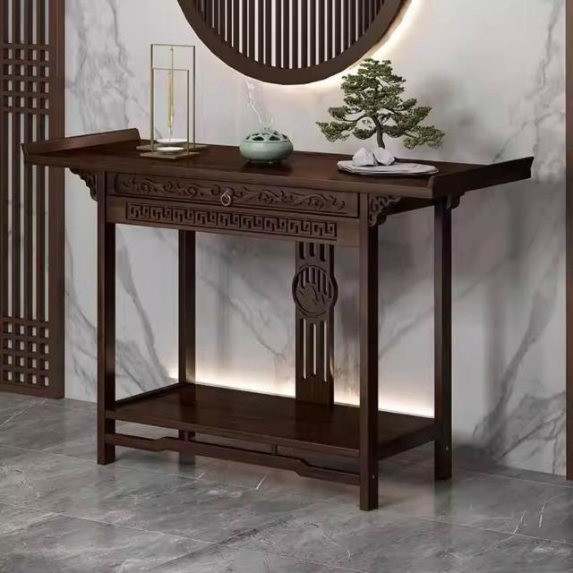 巧可巧可 古典中式實木佛龕收納櫃 玄關桌/神桌 禪風古典供奉櫃 加高帶門帶抽供桌 佛龕立櫃【80/100/120/140cm】