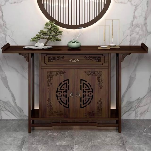 巧可巧可 古典中式實木佛龕收納櫃 玄關桌/神桌 禪風古典供奉櫃 加高帶門帶抽供桌 佛龕立櫃【80/100/120/140cm】