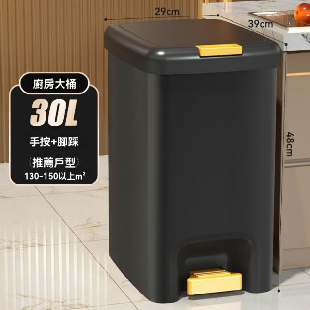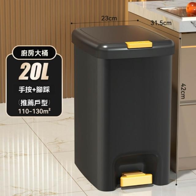 巧可巧可 15/20L/30L手按+腳踩雙開蓋垃圾桶 密封防臭垃圾桶 防水防味垃圾桶 雙開蓋桶