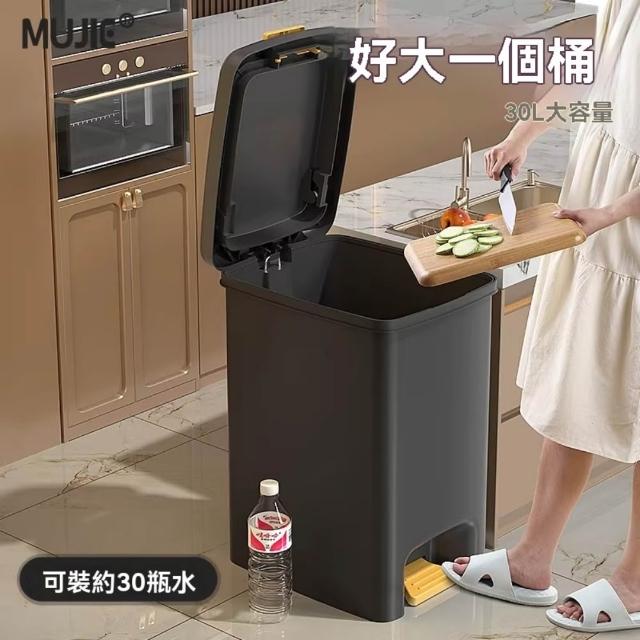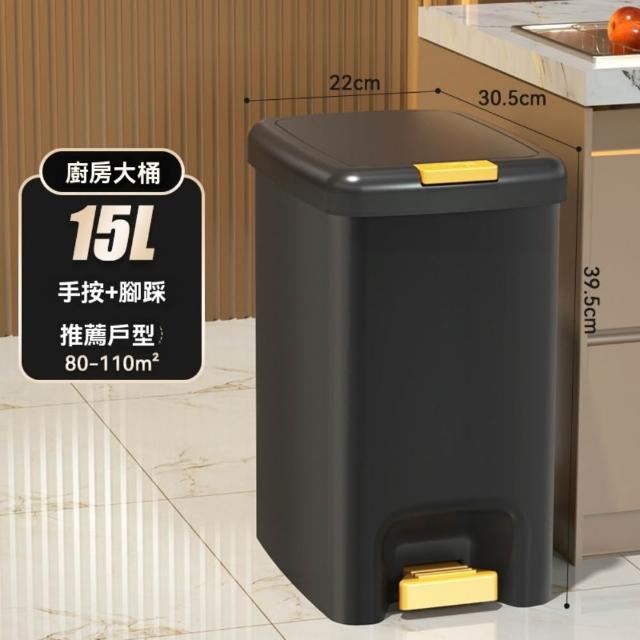 巧可巧可 15/20L/30L手按+腳踩雙開蓋垃圾桶 密封防臭垃圾桶 防水防味垃圾桶 雙開蓋桶
