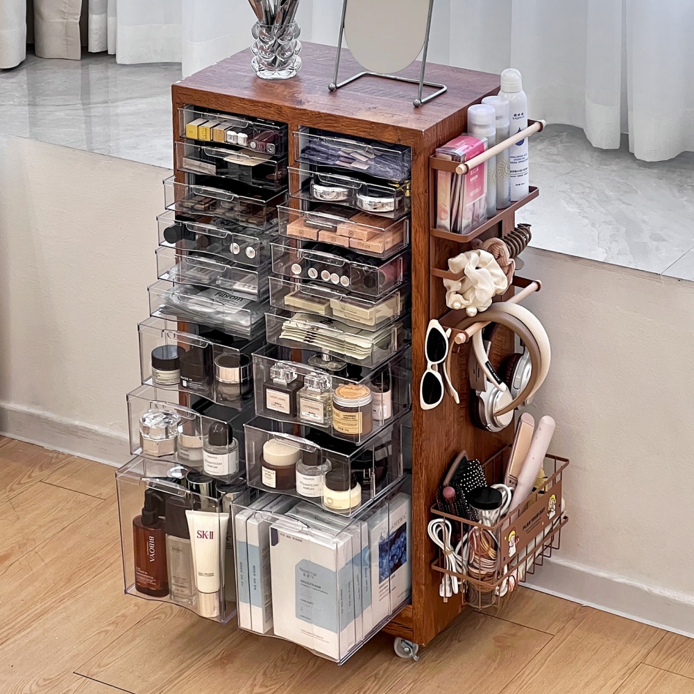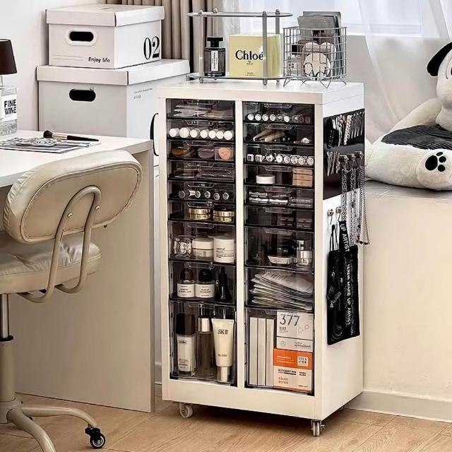 巧可巧可 中古風抽屜收納櫃 窄型夾縫收納抽屜櫃 移動式美妝收納鐵櫃 可磁吸DIY化妝品收納櫃 18抽鐵皮櫃