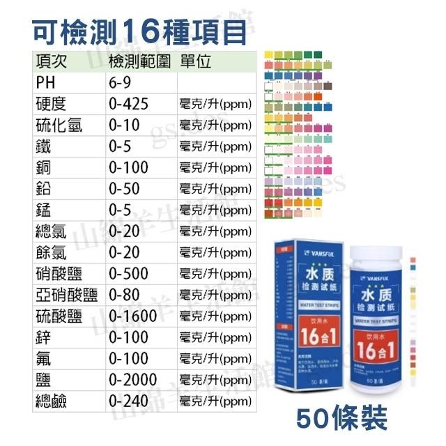 16合一試紙 六合一試紙 餘氯 礦物質 鈣鎂 PH 重金屬 鹽類 鹼類 水質硬度 水軟硬度 水質測試 檢驗