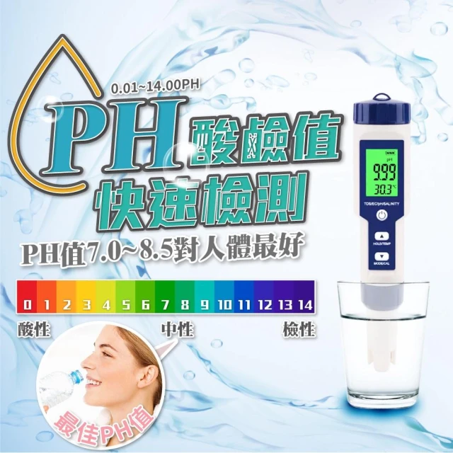 ◎台灣24H出貨◎五合一水質檢測筆 水質 檢測器 檢測筆 酸鹼值 電導率 溶解固體率 鹹度 溫度 TDS PH EC