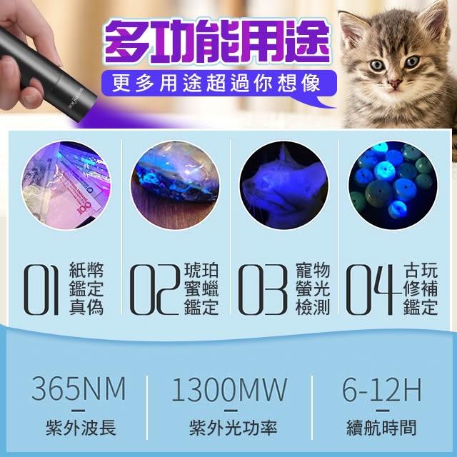 ◎台灣出貨◎伍德氏燈 UV手電筒 貓蘚寵物真菌檢測燈 紫光驗鈔燈 365nm 紫外線燈 紫光燈 螢光劑 玉石燈 貓癬