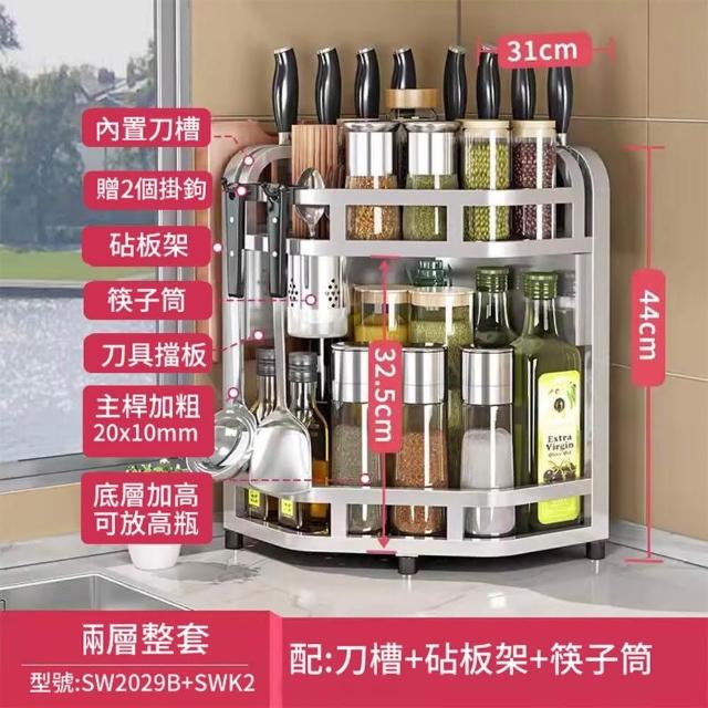 304不鏽鋼調料置物架 兩層整套(調料架/調味架/收納架/刀架/砧板架/筷子筒/廚房收納)