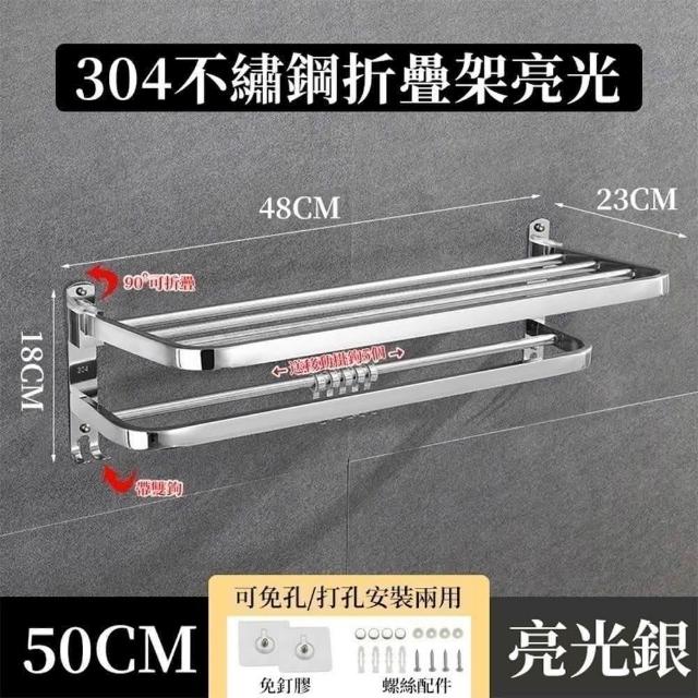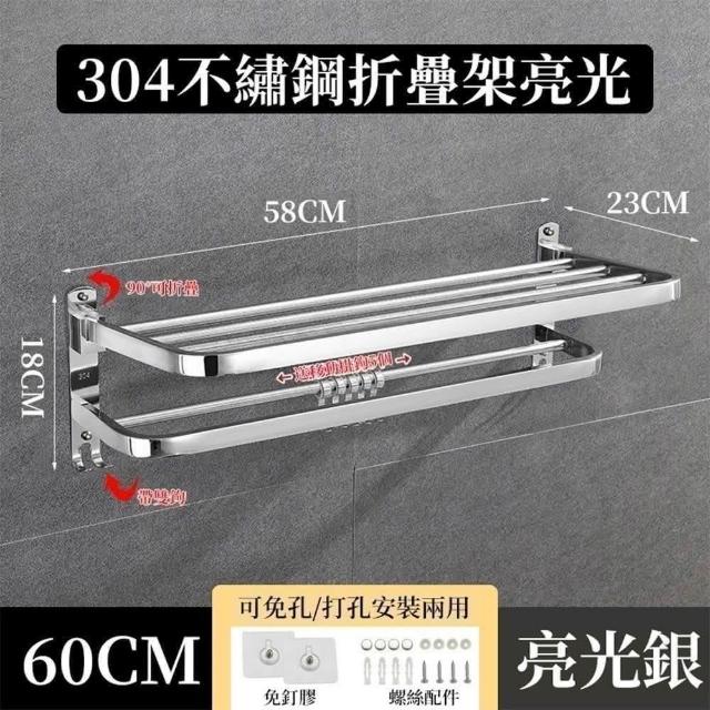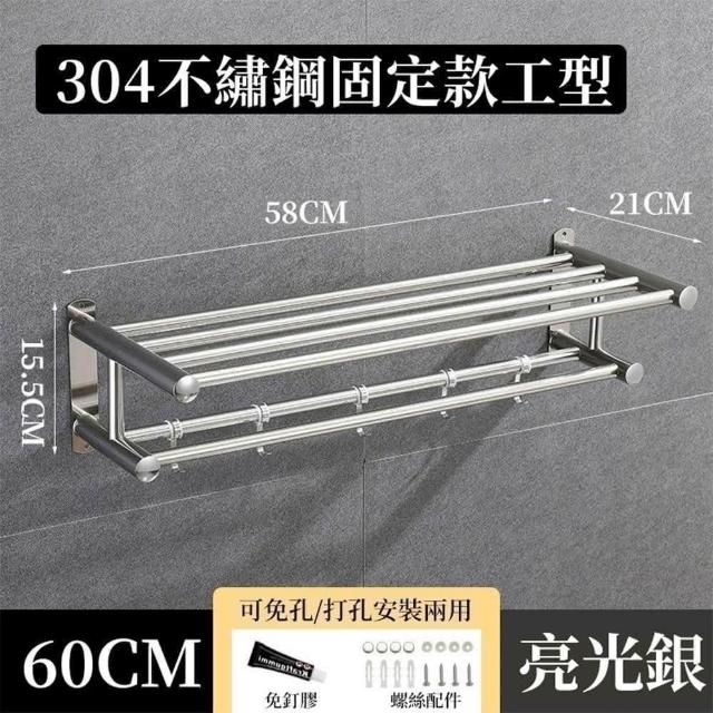 免打孔304不銹鋼浴室毛巾置物架 浴室收納 浴巾架 毛巾架