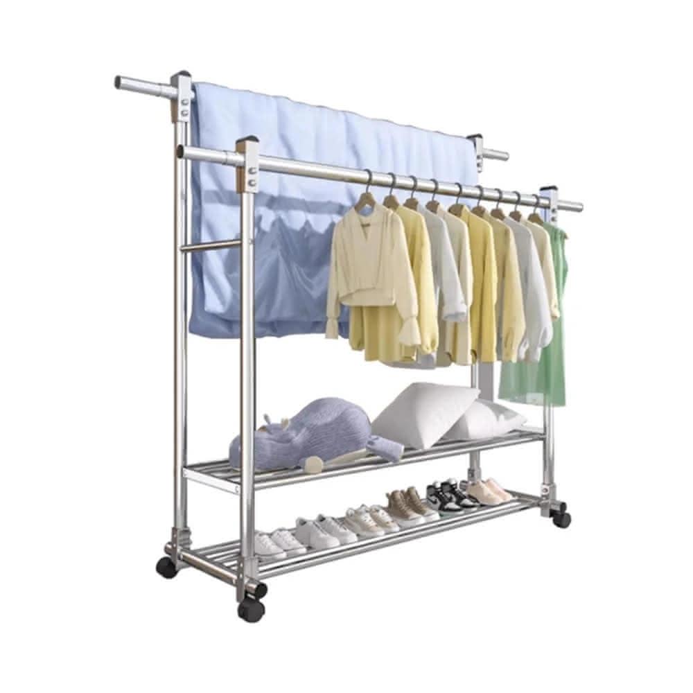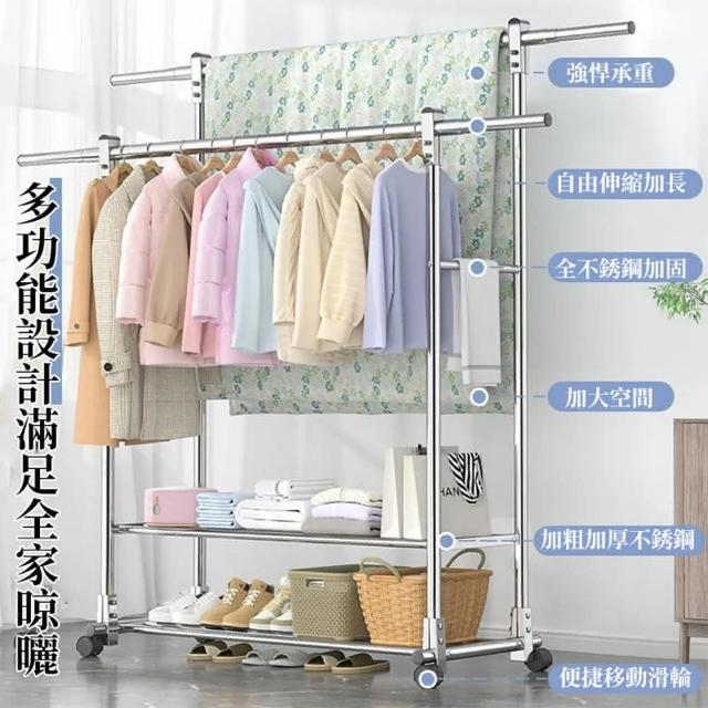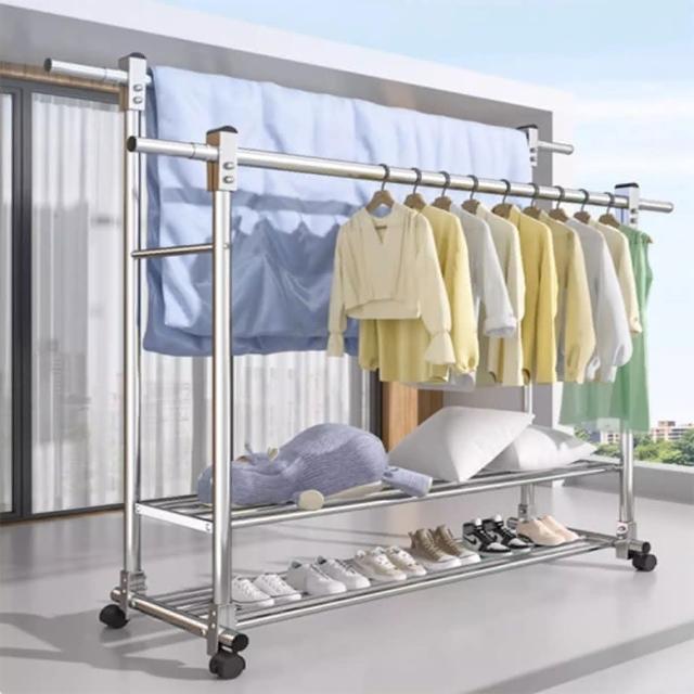 可伸縮120-200cm不鏽鋼雙桿晾衣架 掛衣架 晾衣架 晾衣桿 曬衣桿 曬鞋架 晾曬架