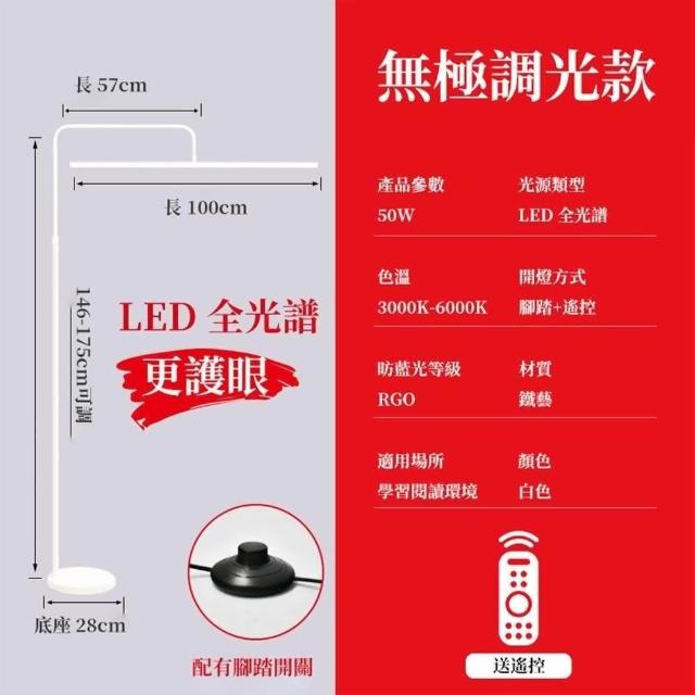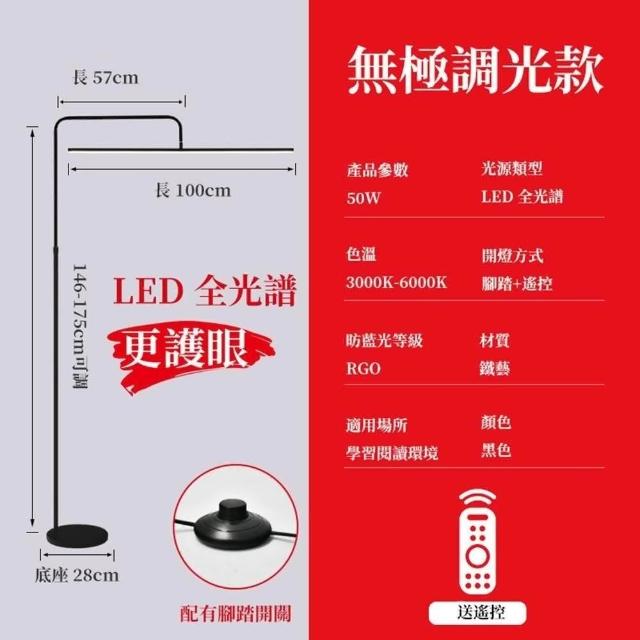 遙控款50W全光譜落地立燈 學習燈 檯燈 閱讀燈 工作燈 鋼琴燈 墻邊燈