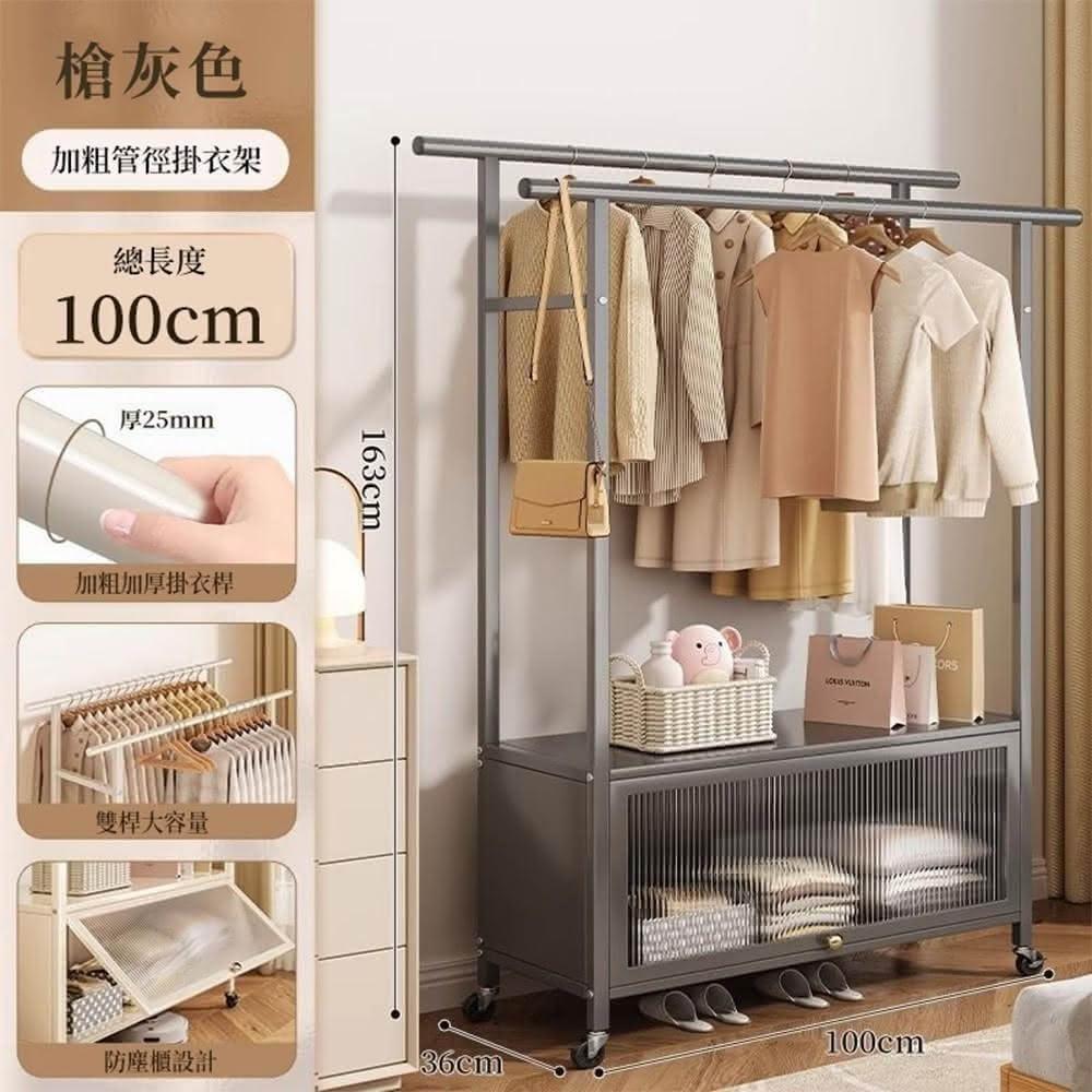 80CM可移動大容量防塵櫃掛衣架(衣帽架/立式衣架/收納衣架/掛衣架/立桿衣帽架/衣架/曬衣架/掛衣服)