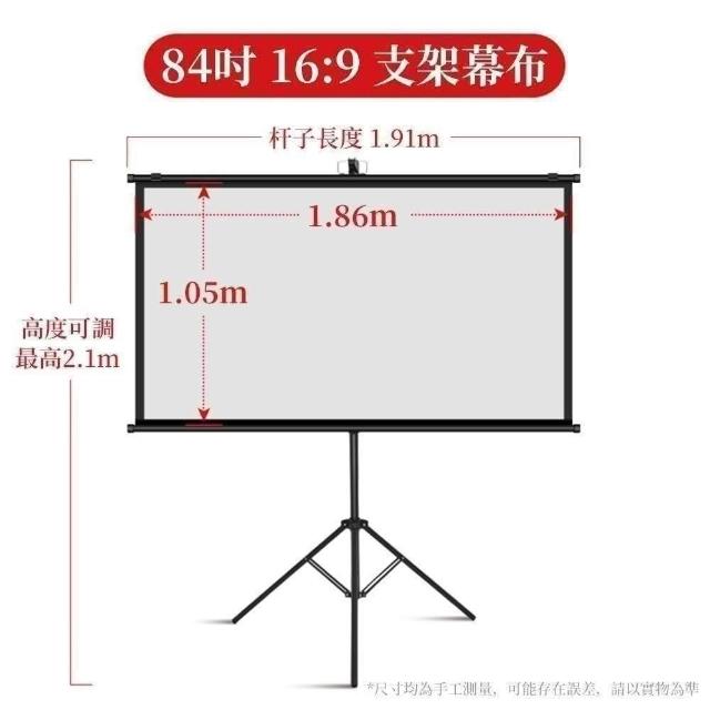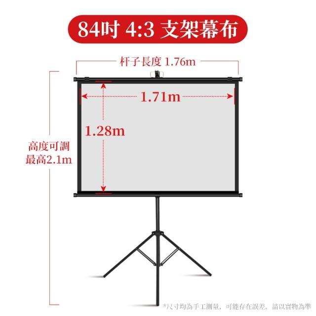84吋便攜支架投影布幕 可壁掛 4K超顯影 支架布幕 支架落地布幕 投影布幕