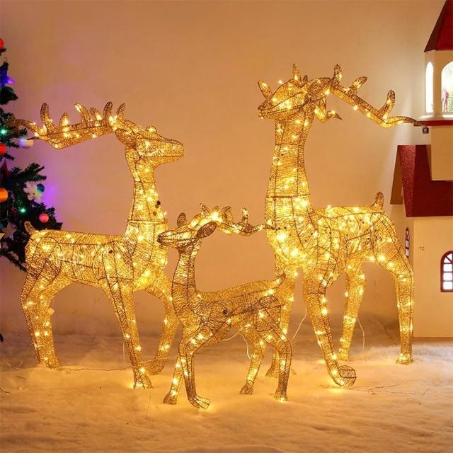 聖誕發光鹿 聖誕裝飾品 金色鹿擺件 發光麋鹿 小鹿拉車 商場酒店櫥窗展示麋鹿 聖誕鹿 雪橇車 交換禮物