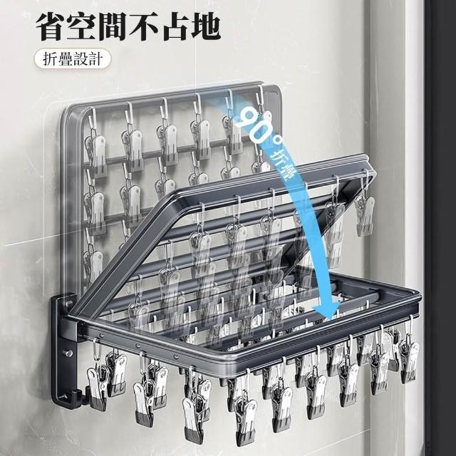 免打孔晾衣架 內衣架 陽臺室內窗框隱形折疊掛衣架 太空鋁免釘壁掛衣架 衣夾 夾襪子 多功能晾曬神器 晾衣架收納