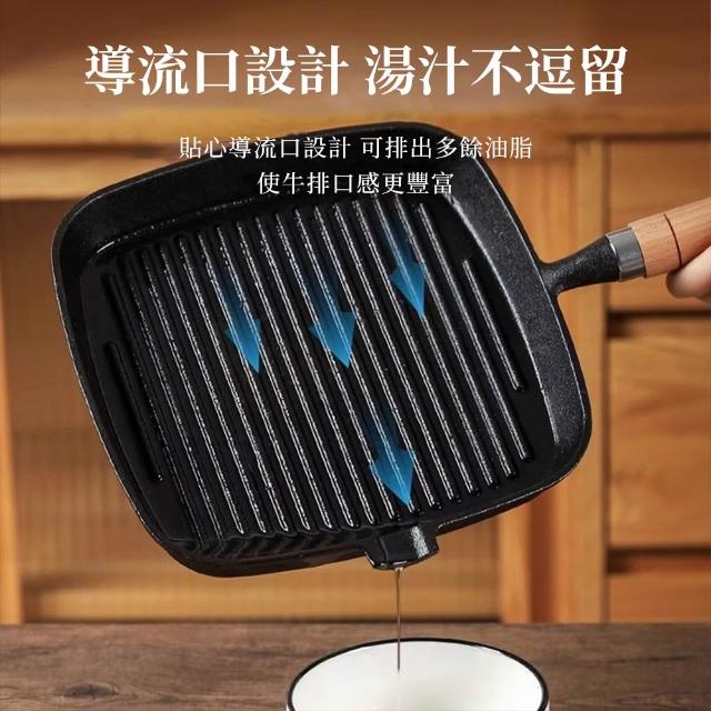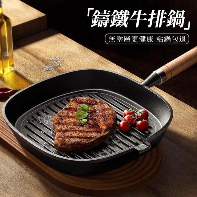 鑄鐵鍋牛排煎鍋一體專用條紋煎牛排鍋烤肉平底鍋無塗層不粘鍋家用