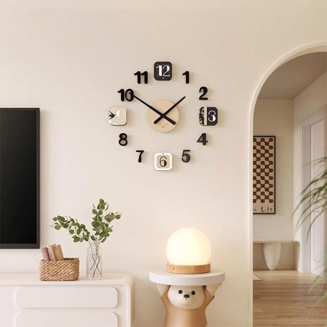 免打孔掛鐘客廳奶油風鐘表時尚創意DIY時鐘掛墻現代簡約