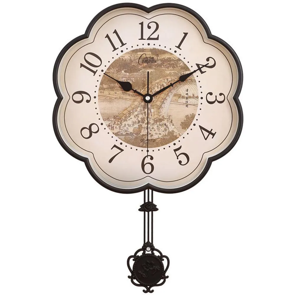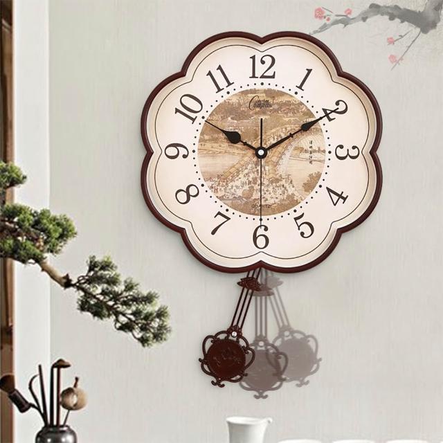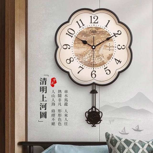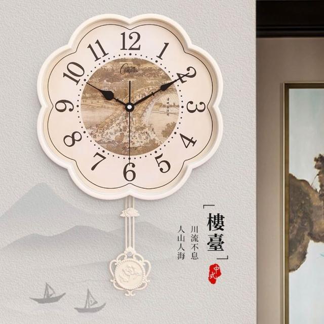 35*53CM 搖擺款 仿古典石英鐘錶 超靜音掛鐘 搖擺時鐘 客廳臥室梅花石英掛鐘 新中式石英鐘錶