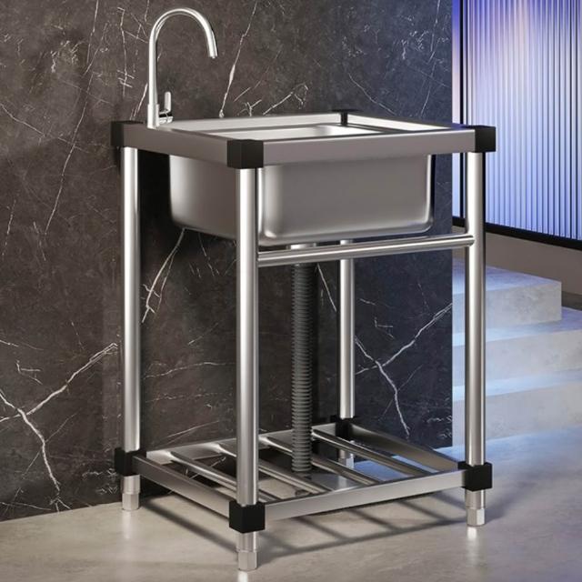 單冷龍頭款 50*37*75CM 304不鏽鋼一體水槽 R角 無磁 大單槽 洗菜洗碗槽 加厚