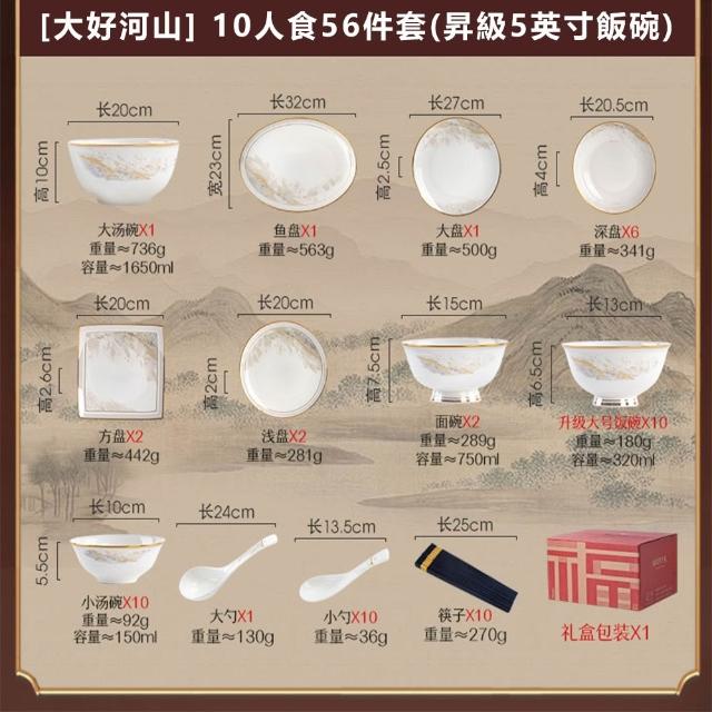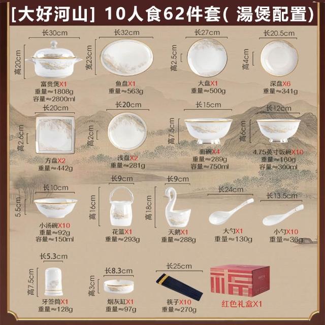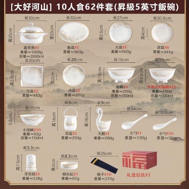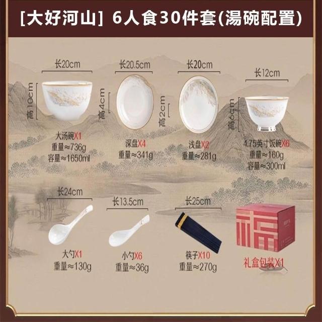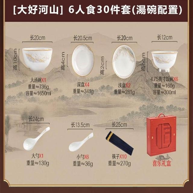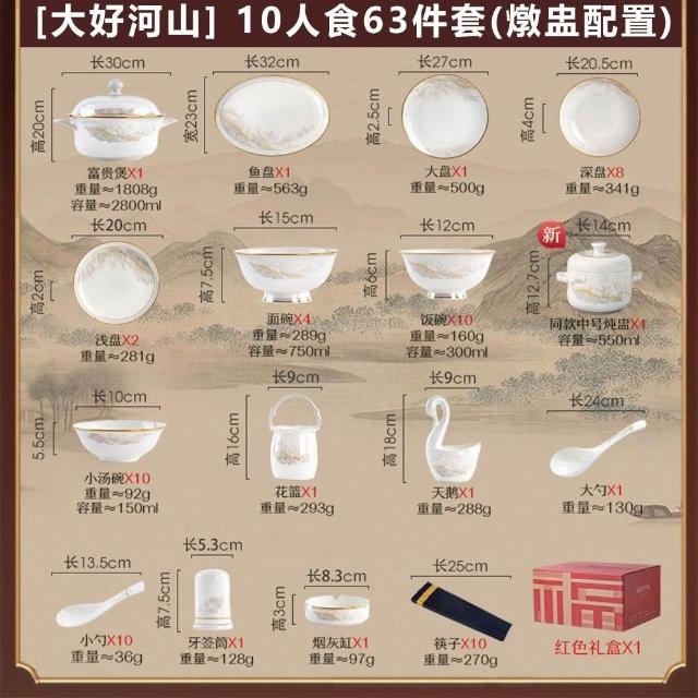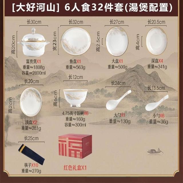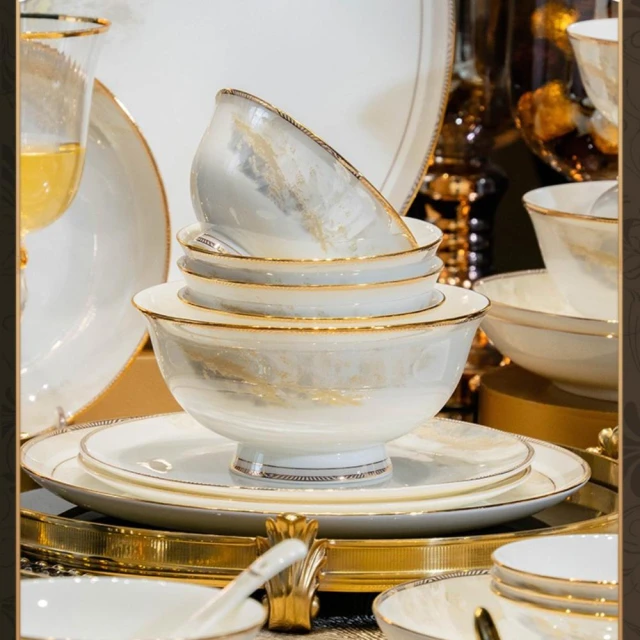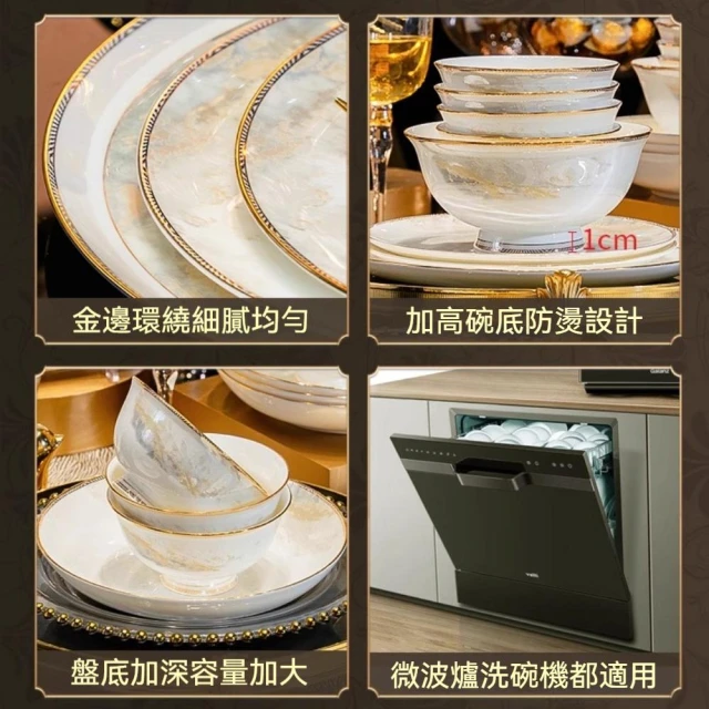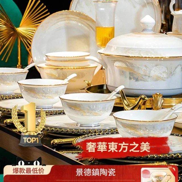 碗碟套裝 家用高顏值碗盤 喬遷禮品 白色金邊陶瓷餐具 碗勺筷套裝碗具