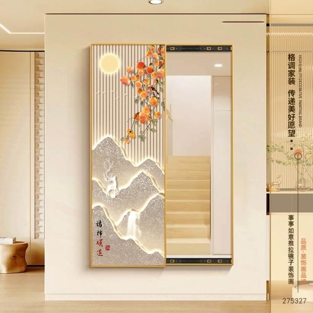 隱形穿衣鏡 隱藏落地鏡 玄關裝飾畫可關閉 客廳臥室推拉鏡子壁畫