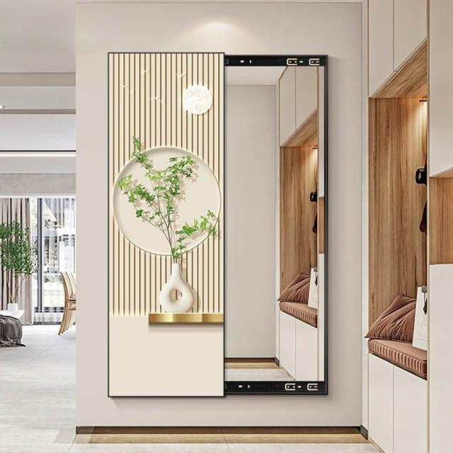 隱形穿衣鏡 隱藏落地鏡 玄關裝飾畫可關閉 客廳臥室推拉鏡子壁畫