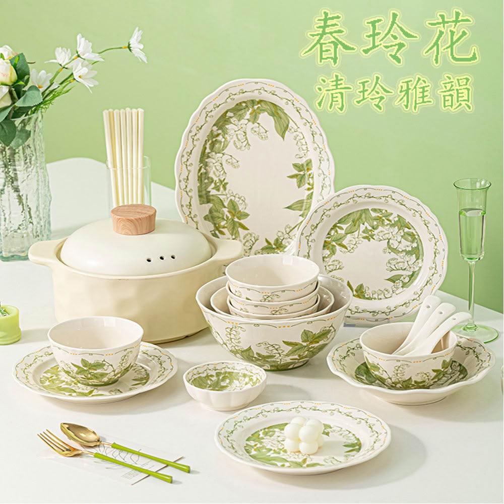 春玲語碗碟套餐 多件套可選 小清新碗盤 碗具 瓷器餐具套裝 家居喬遷好物 釉下彩碗碟組